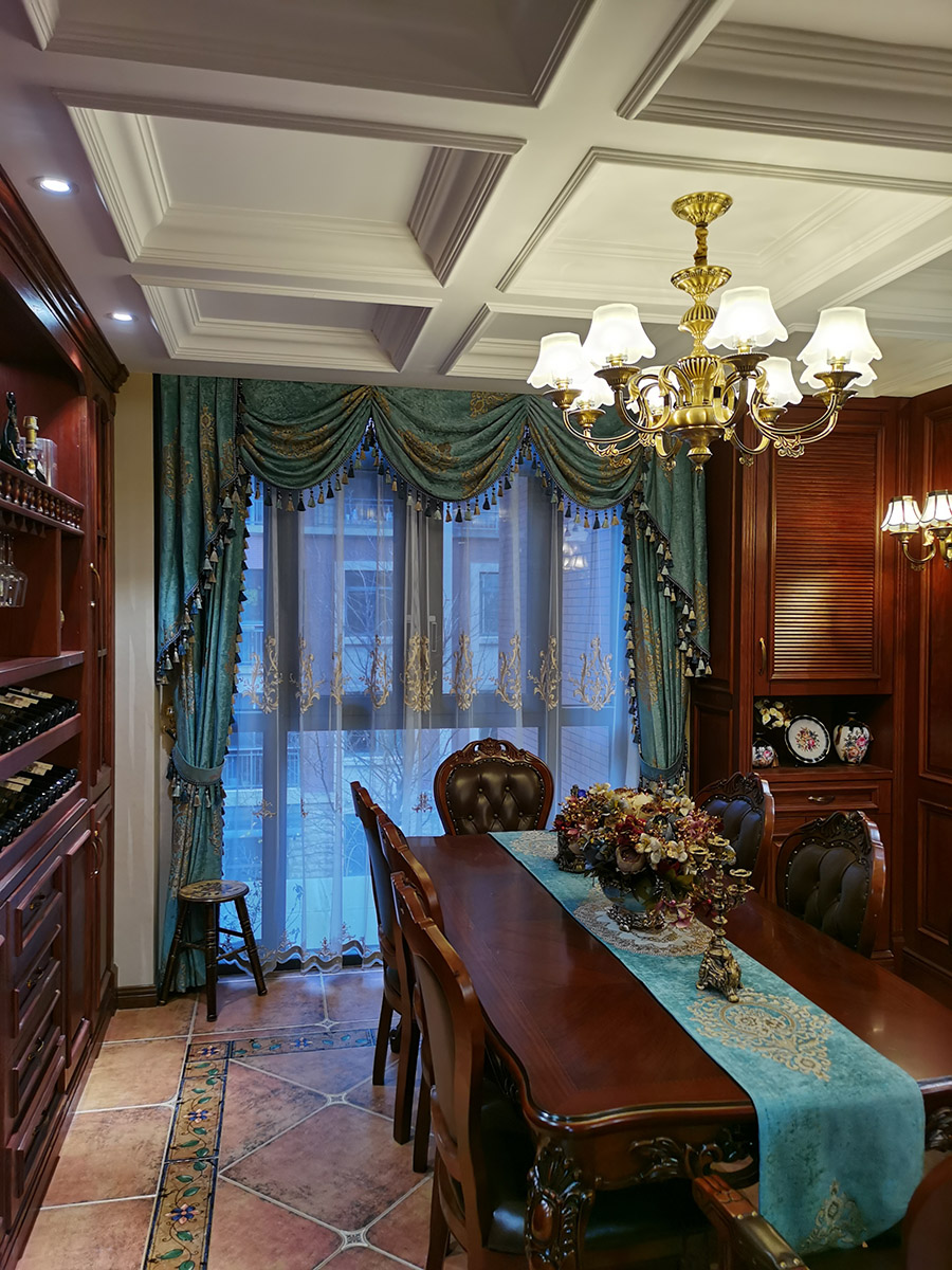 本案设计风格是新美式风格,浙墅匠鼎装饰集团出品,保利蓝海郡位于洪山区,案例180平方在设计上不加过多修饰与约束的美式风格,散发出迷人的休闲式浪,既有着欧式风格的华丽与贵气,又剔除了更多羁绊,同时又能寻找文化根基的新的怀旧,贵气而不失自在与随意。简美更是以功能性为优先考虑,适合追求舒服,兼顾优雅,既注重起居品质,又不过分张扬的人群。 深色系的沙发、木质家具搭配一株绿色的植物,传递着简洁、舒适的气息,在淡黄色光线的映衬下,呈现出雅致浪漫的韵味。明亮的光线从宽大的窗户照进,客厅空间显得宽敞大气。装修咨询电话:15377566968.